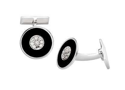 Add a touch of class and sparkle to your day or evening with these beautiful unisex black enamel and cubic zirconia cufflinks, complemented by nine pave set white round brilliant cut cubic zirconia in each.