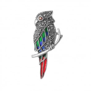 City of London jewellers present this gorgeous real silver and marcasite parrot brooch BRS00079.