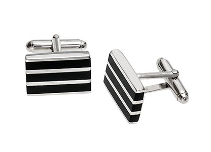 Silver Striped Onyx Cufflinks CK00138.