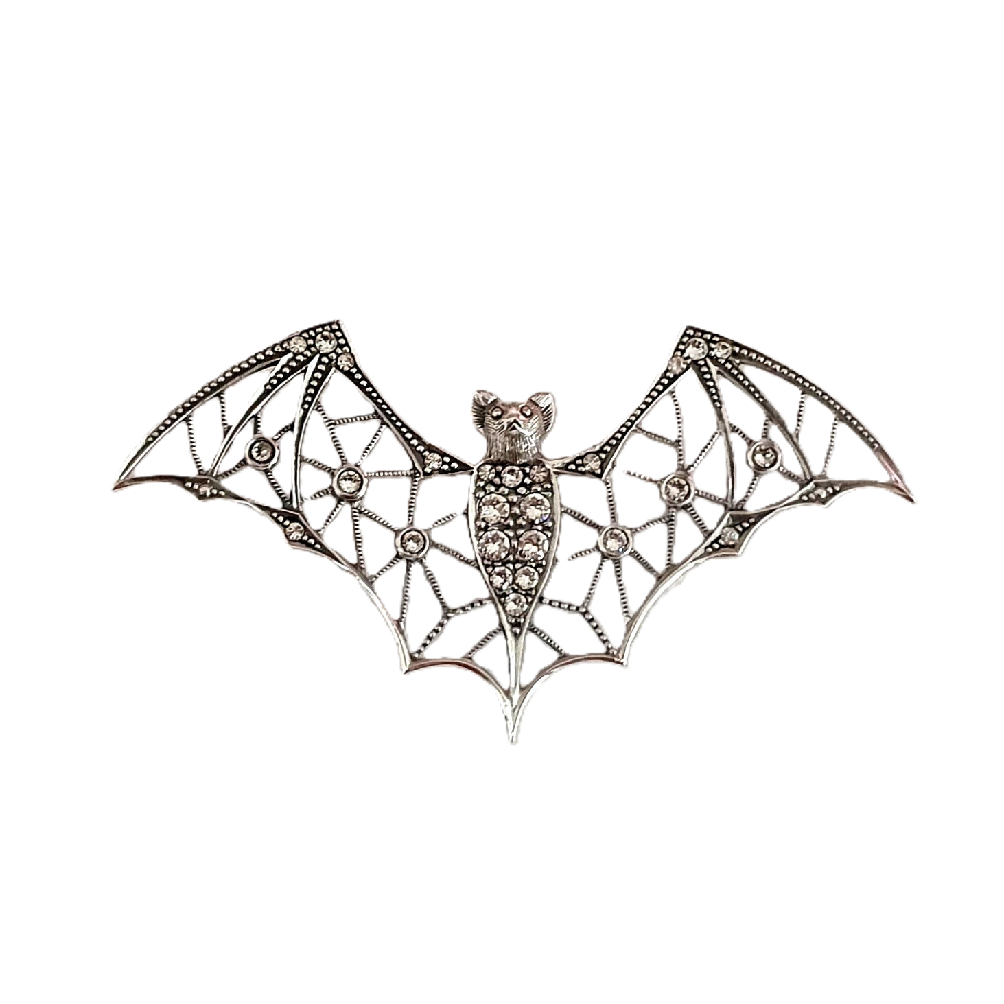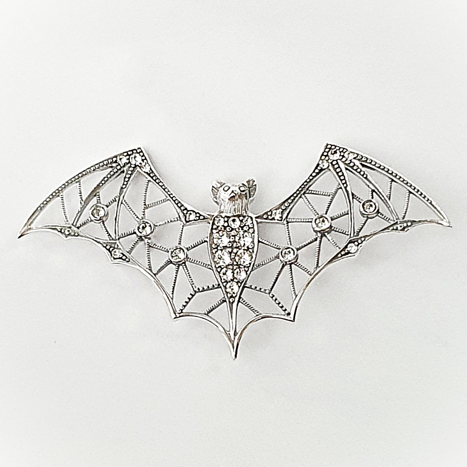 City of London Jewellers Presents the  Nine Elms stunning Bat brooch crafted in real sterling silver and set with sparkling white crystals.