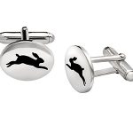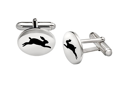 Flat, oval, real silver cufflinks with an unusual country theme, a silhouette of a running Hare. The ideal gift for the well dressed country lady or gentleman.