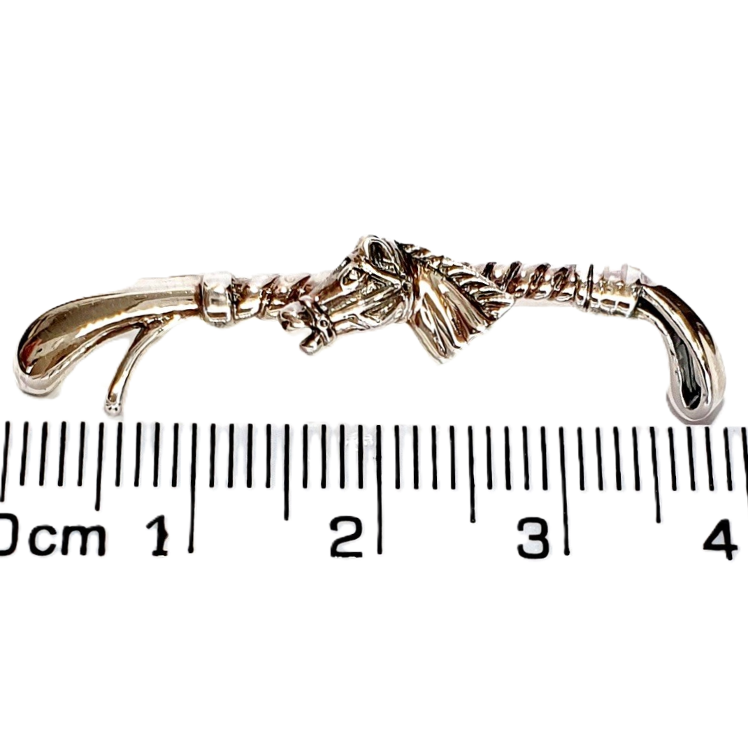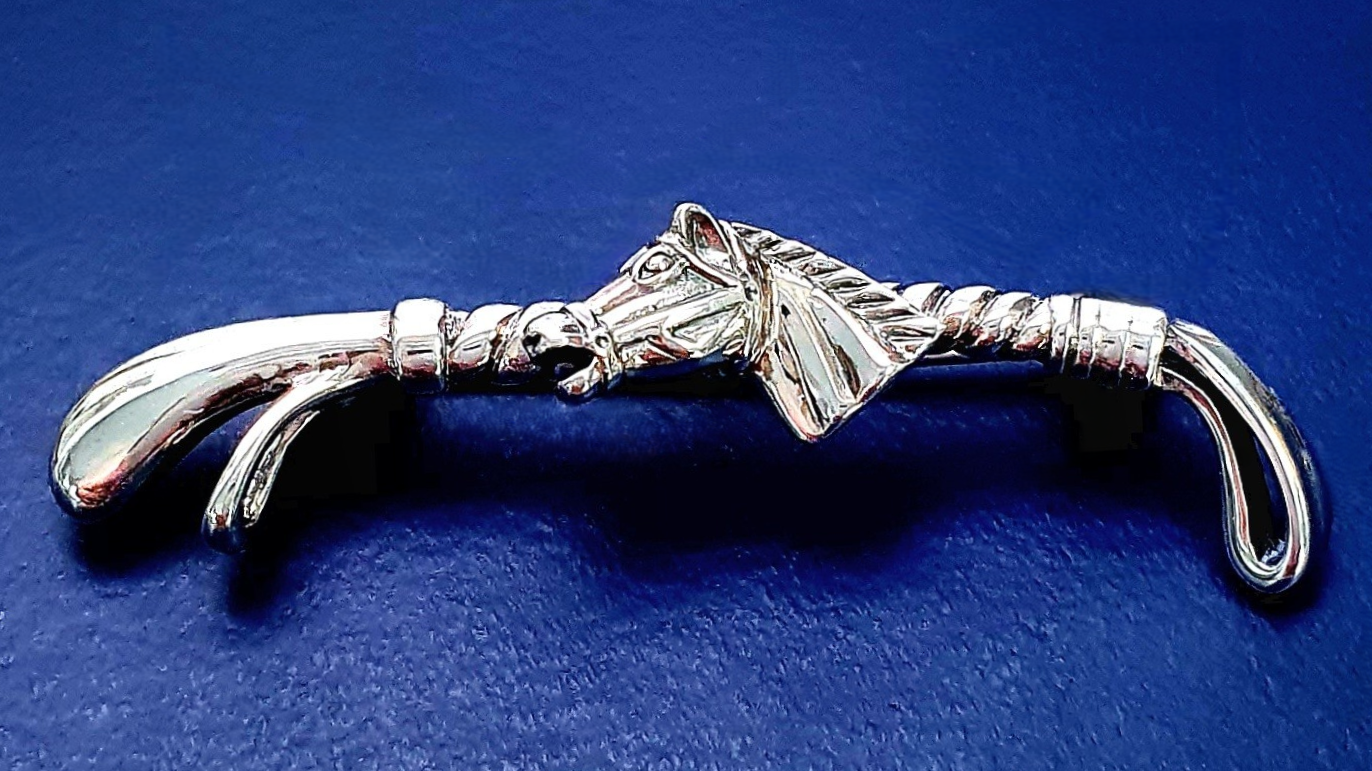 City of London Jewellers present this lovely real sterling silver riding crop brooch with a horse’s head taking centre stage.