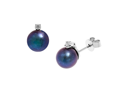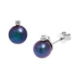 Beautiful 7.5mm black cultured pearl stud earrings, Crafted in 9ct white gold enhanced with a contrasting single round white diamond. A classic design that has stood the test of time, a versatile earring, that is great for both the office or with that ravishing evening dress.