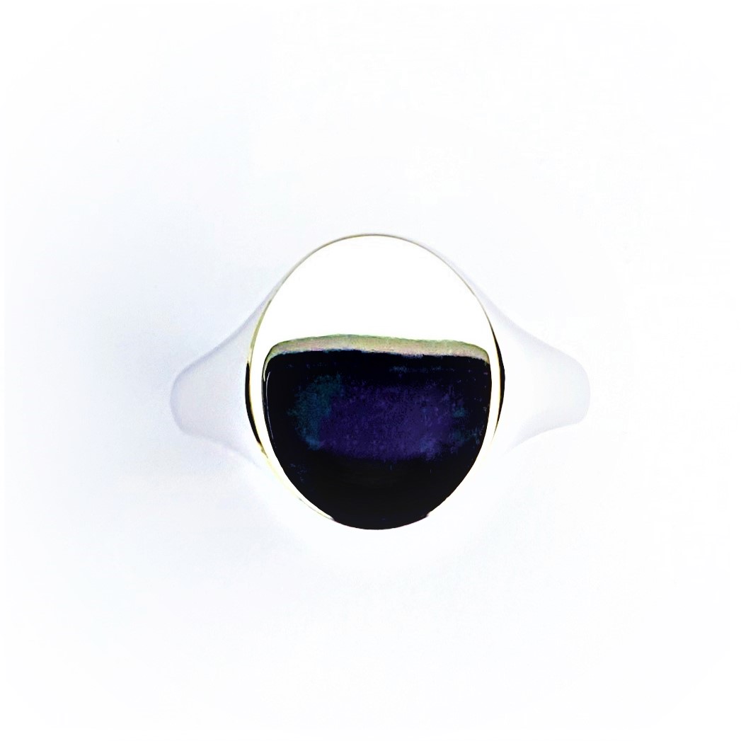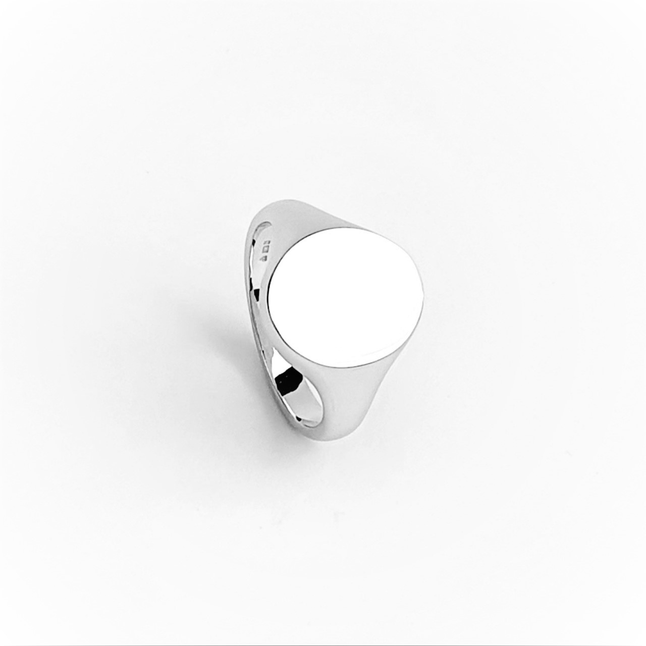 The City of London Jewellers presents this larger-than-average 9ct White-Gold Oval Signet Ring or Oxford Signet ring.