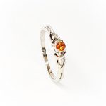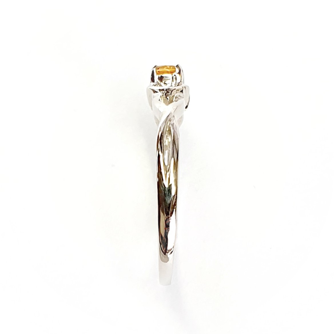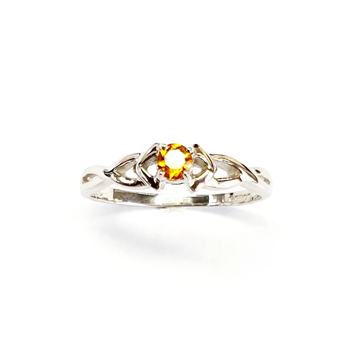 A fantastic looking round Citrine Ring where the colours contrast complement each other beautifully. With a 4mm white gold band tapering to 1.5mm at the back, the overall top measures 3.3mm x 3.3mm and the round brilliant cut citrine stone measures approximately 3mm x 3mm. The round brilliant cut citrine at the centre boasts visible facets that really enhance its shape and sparkle. This White Gold Citrine Ring creates a look that is elegant and graceful a beautiful golden yellow stone that has a four claw setting , giving a petite dainty feminine look. A must have addition to any jewellery lovers collection.