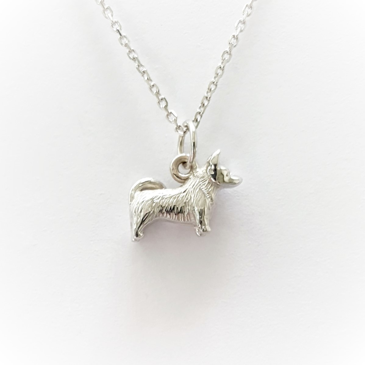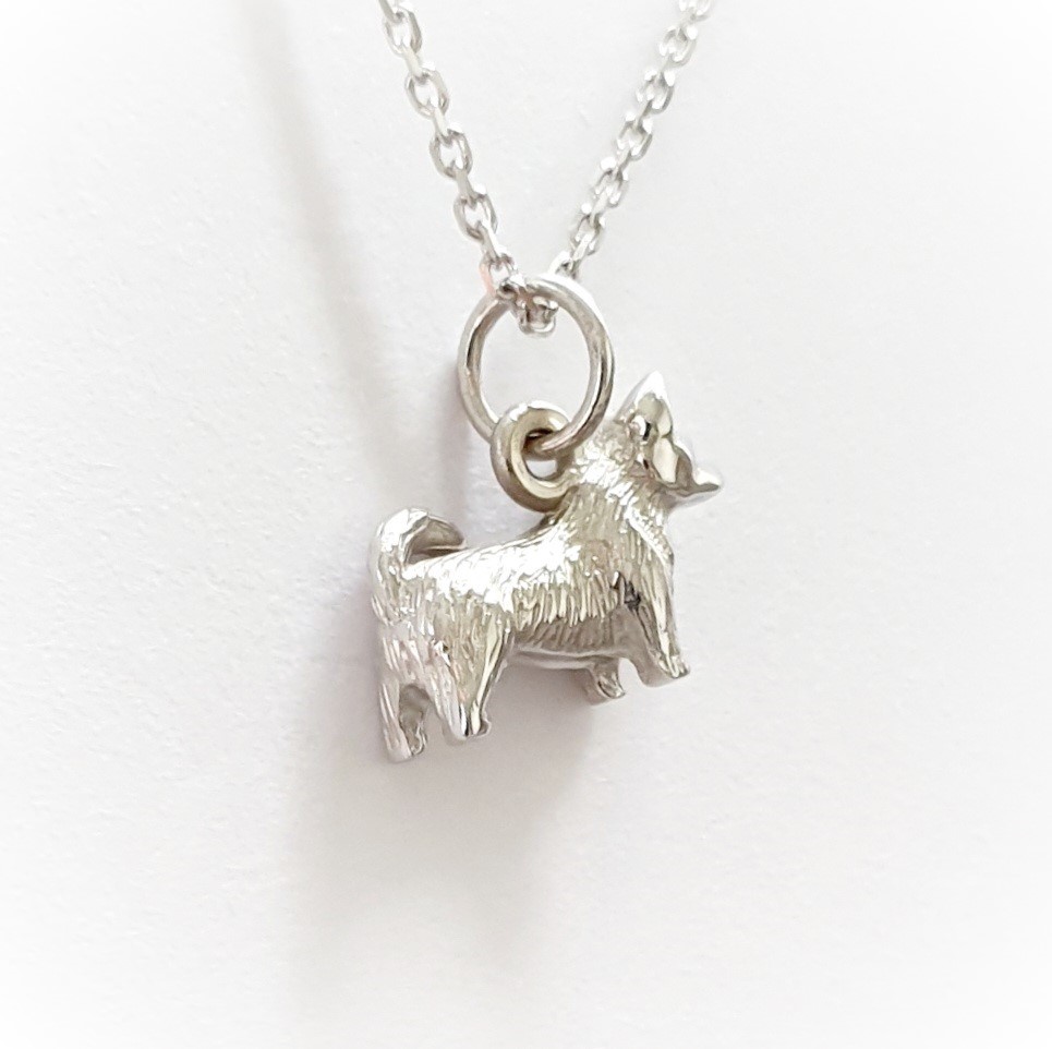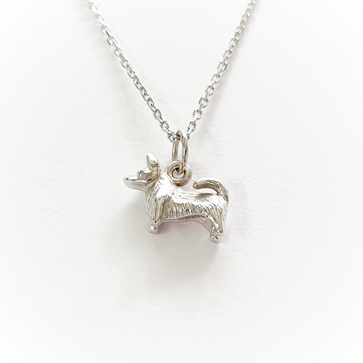 This adorable corgi pendant has been intricately sculpted in solid 9ct white gold with incredible detail also suitable for use as a charm.