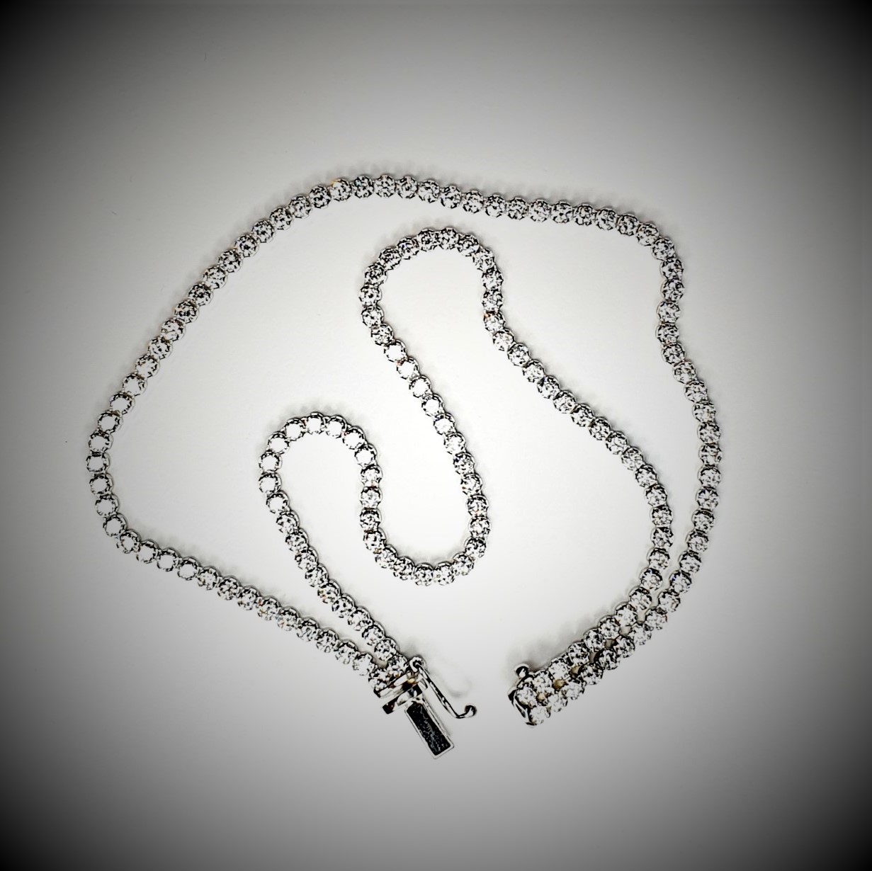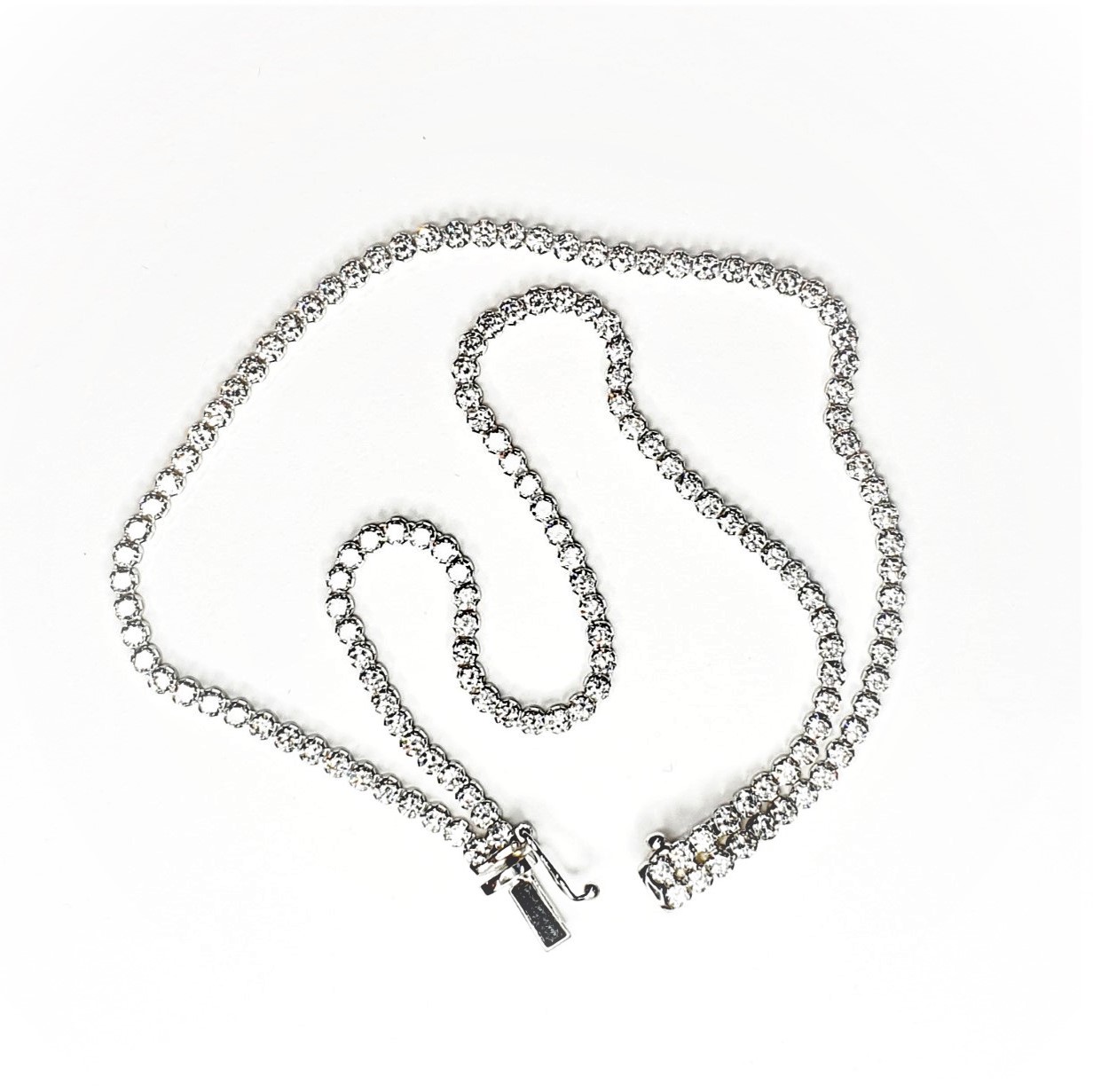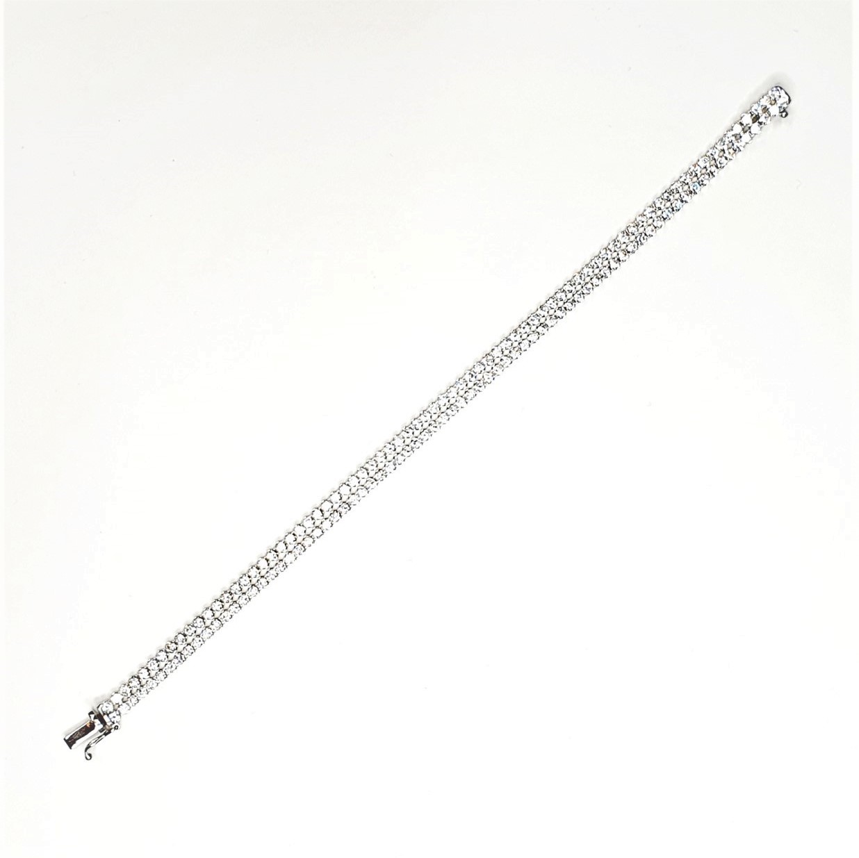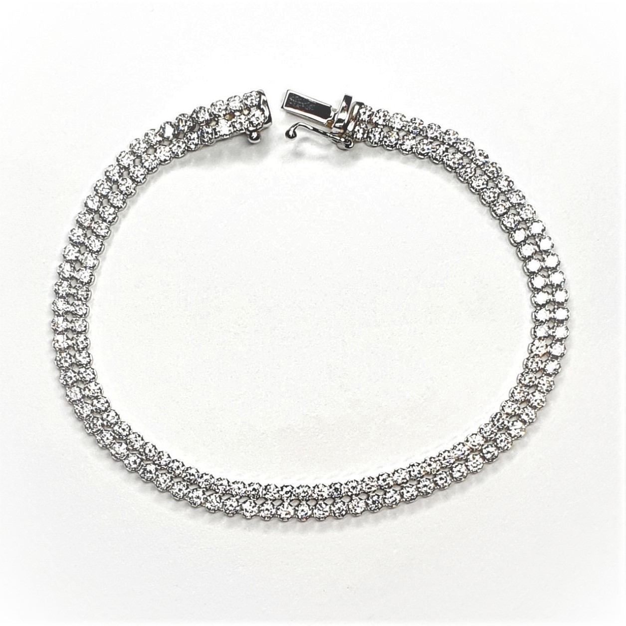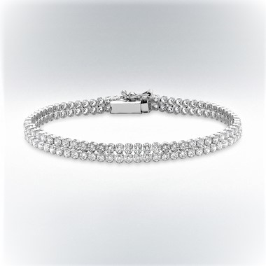 This luxurious and elegant 9ct white gold double row eternity tennis bracelet is crafted to the highest standard with each high quality cubic zirconia individually claw set, it has a concealed clasp allowing a continuous uninterrupted smooth flowing movement, also fitted to one side with a figure of eight safety catch for extra safety.