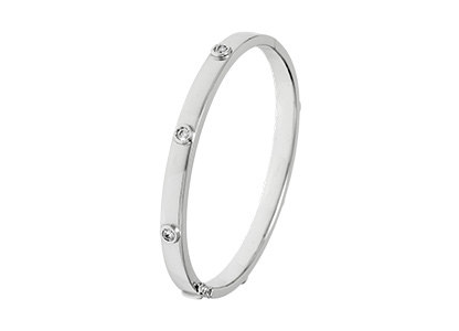 This gorgeous contemporary bangle is made in 9ct white gold and set with six sparkling white cubic zirconia’s to add a touch of glittering glamour to any outfit.