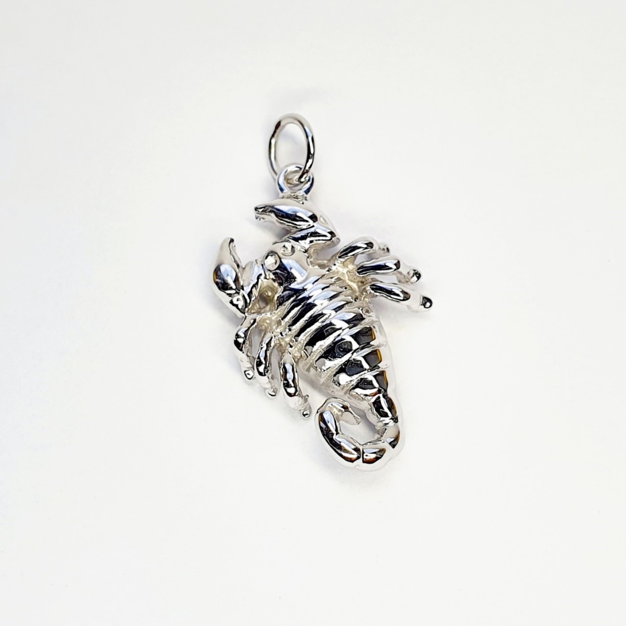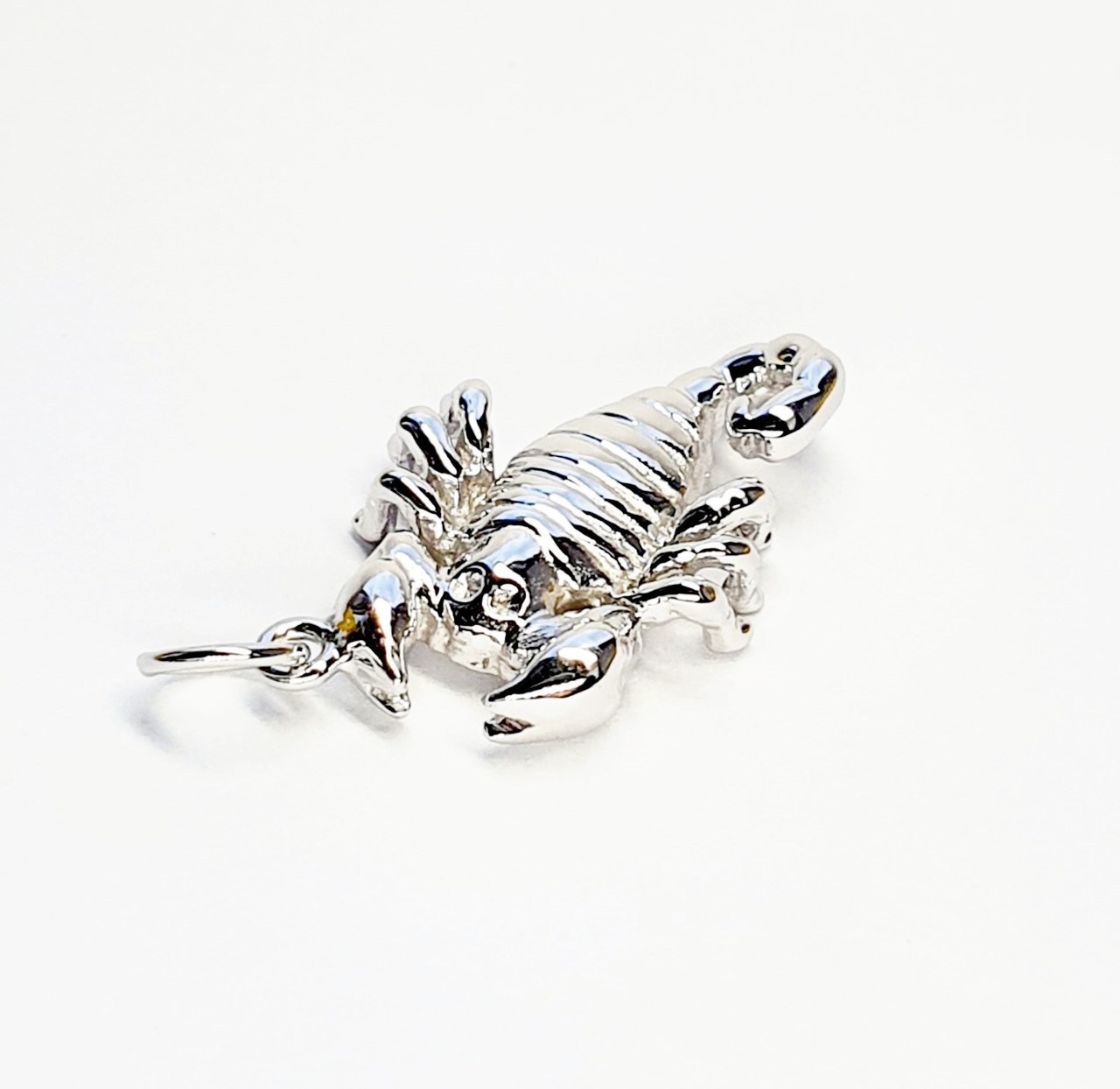 This unusual heavy scorpion pendant/Charm is crafted in solid 9ct White gold.