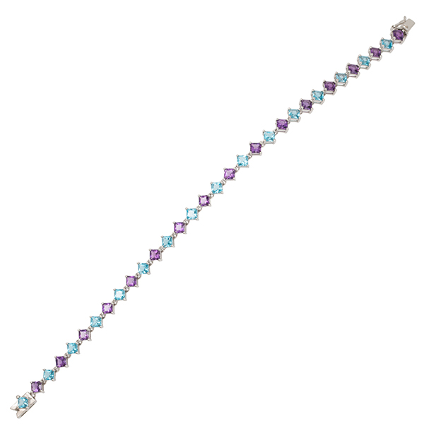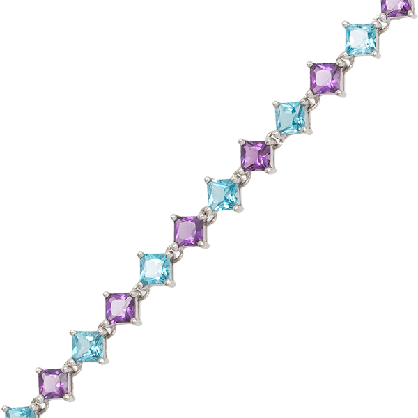 White Gold Square Amethyst & Topaz Bracelet BL00147